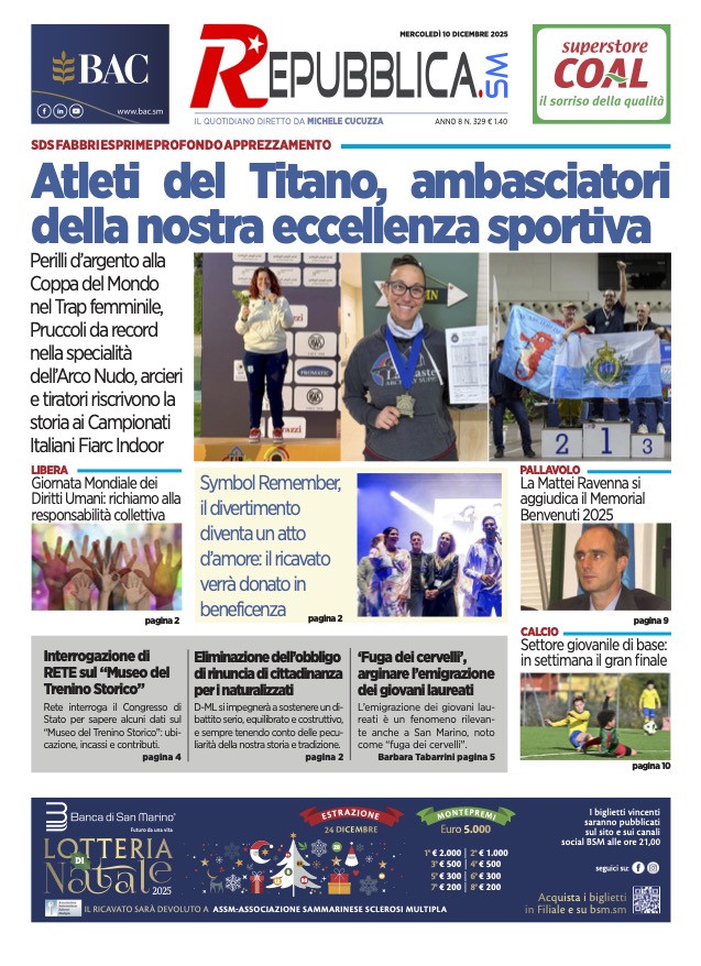 Leggi successivoSan Marino. La prima pagina de LA SERENISSIMASuccessivo