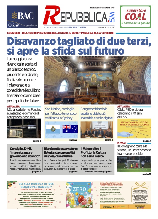 Leggi successivoSan Marino. La prima pagina de LA SERENISSIMASuccessivo