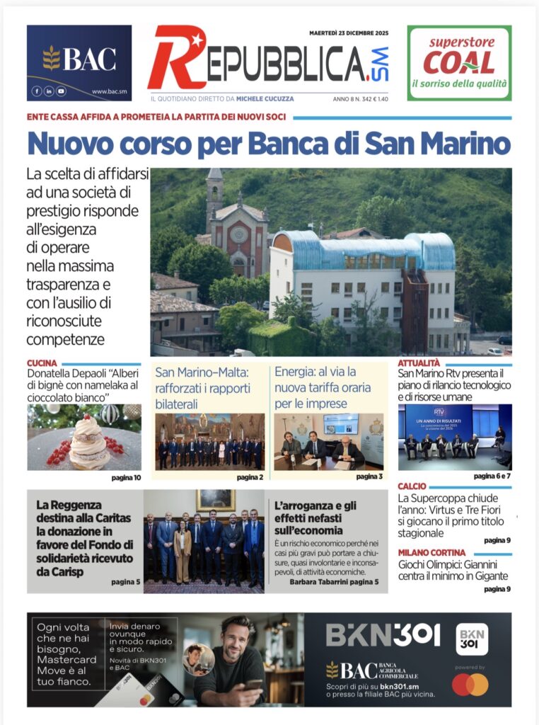 Leggi successivoSan Marino. La prima pagina de La SerenissimaSuccessivo