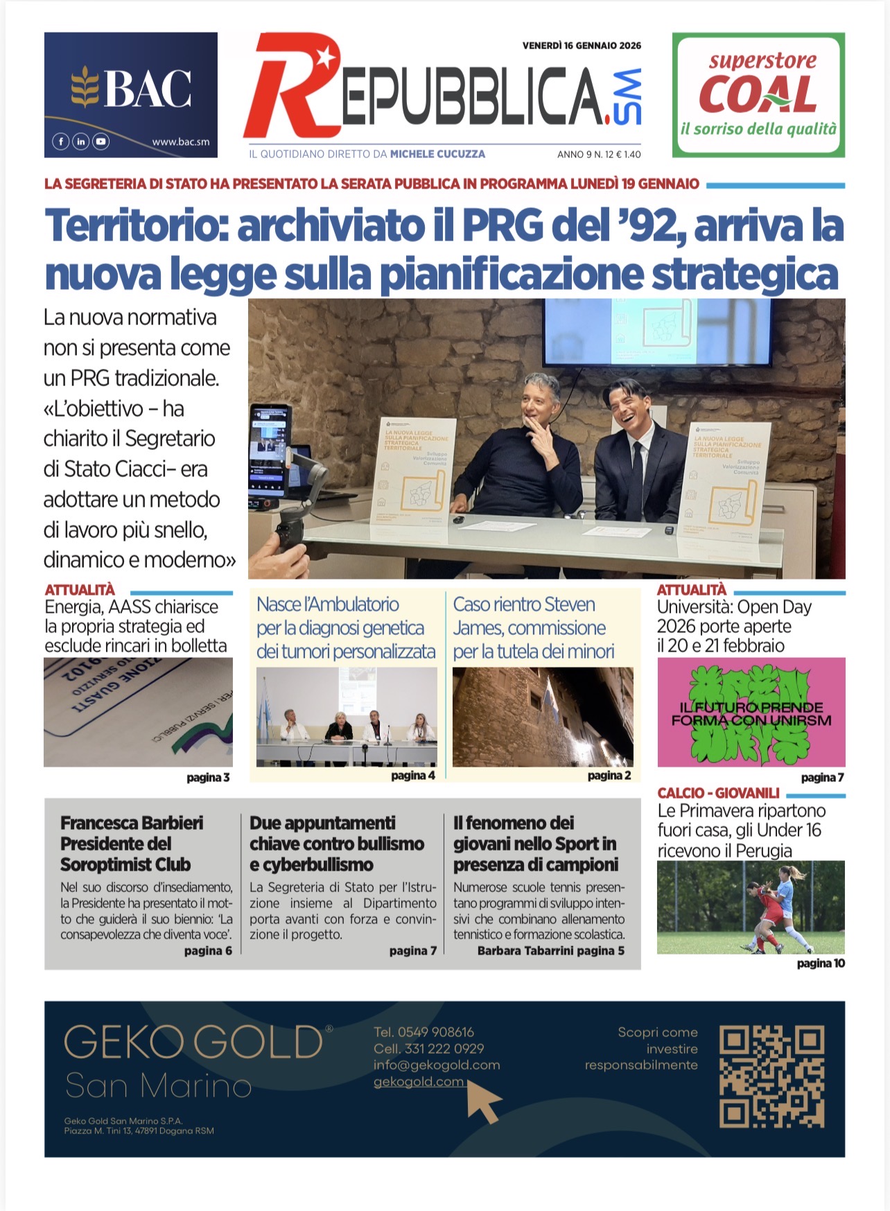 San Marino. La prima pagina de La RepubblicaSM