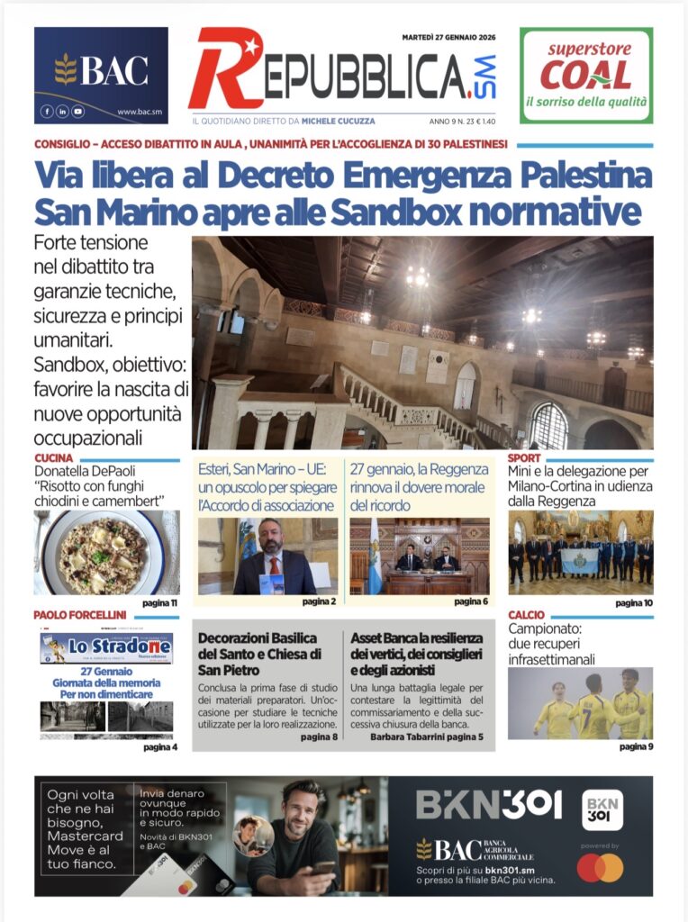 Leggi successivoSan Marino. La prima pagina de La SerenissimaSuccessivo