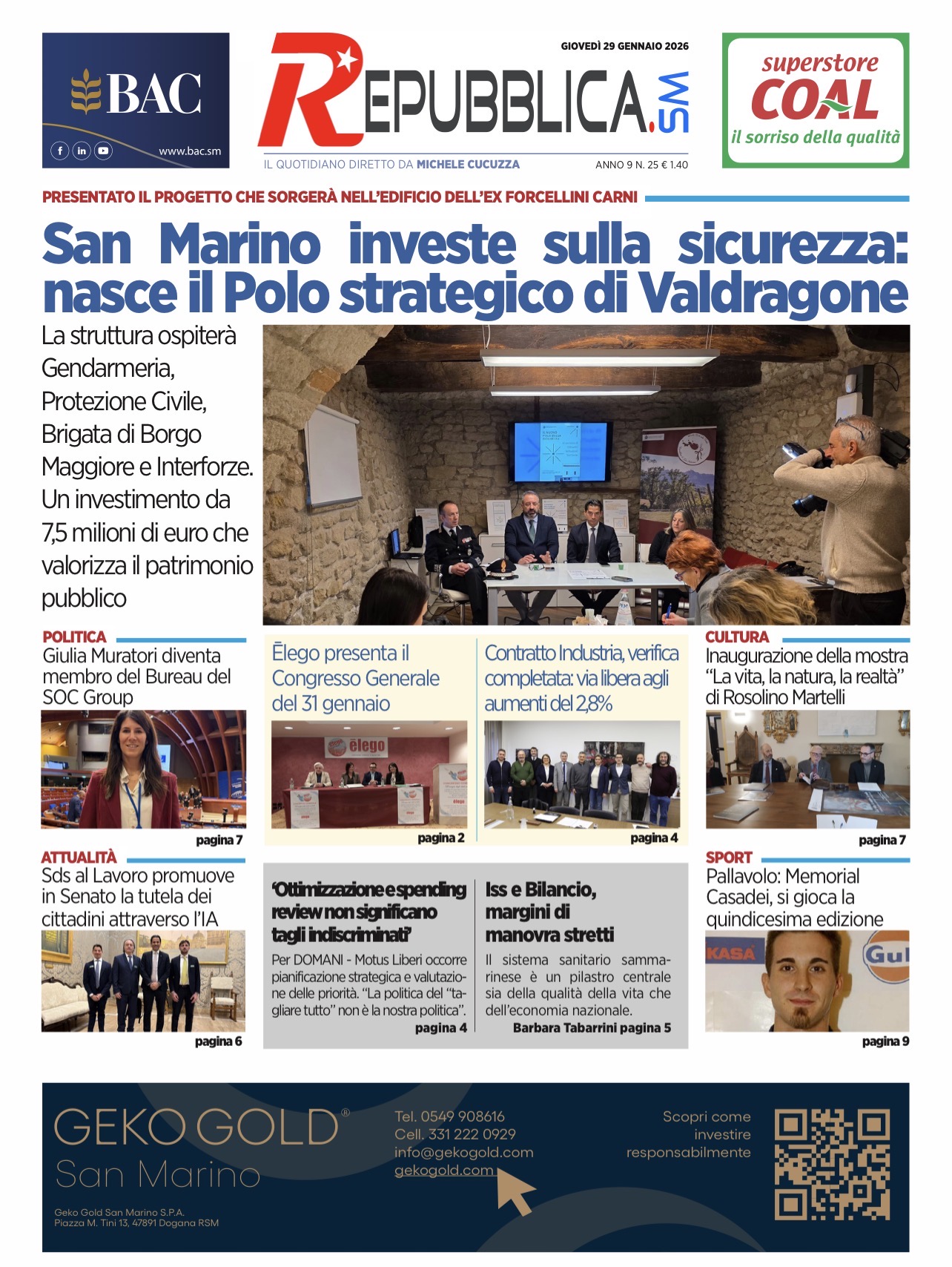 • San Marino. DIARIO QUOTIDIANO – Secondo appuntamento 29 gennaio 2026. Rubrica del nostro direttore Marco Severini
