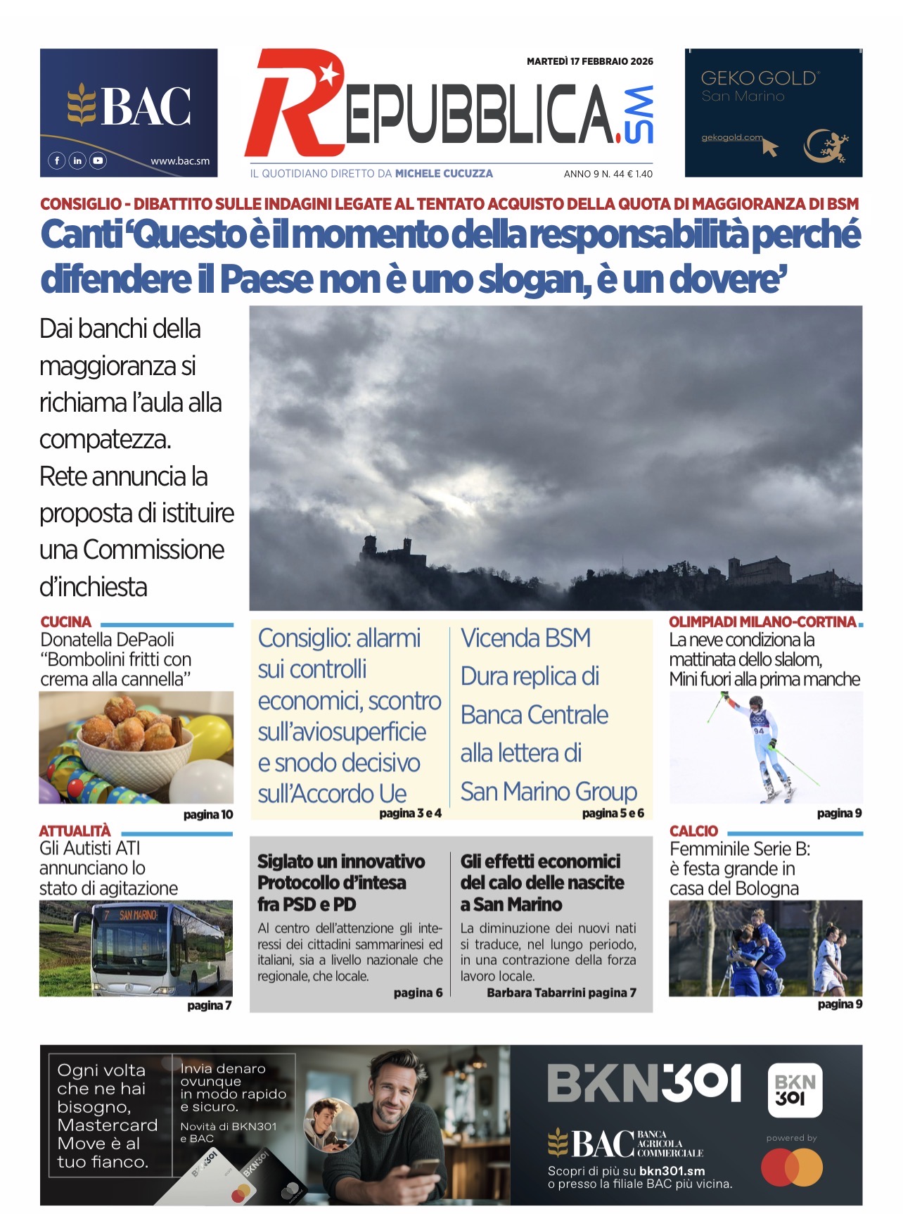 Leggi successivoSan Marino. La prima pagina de La SerenissimaSuccessivo