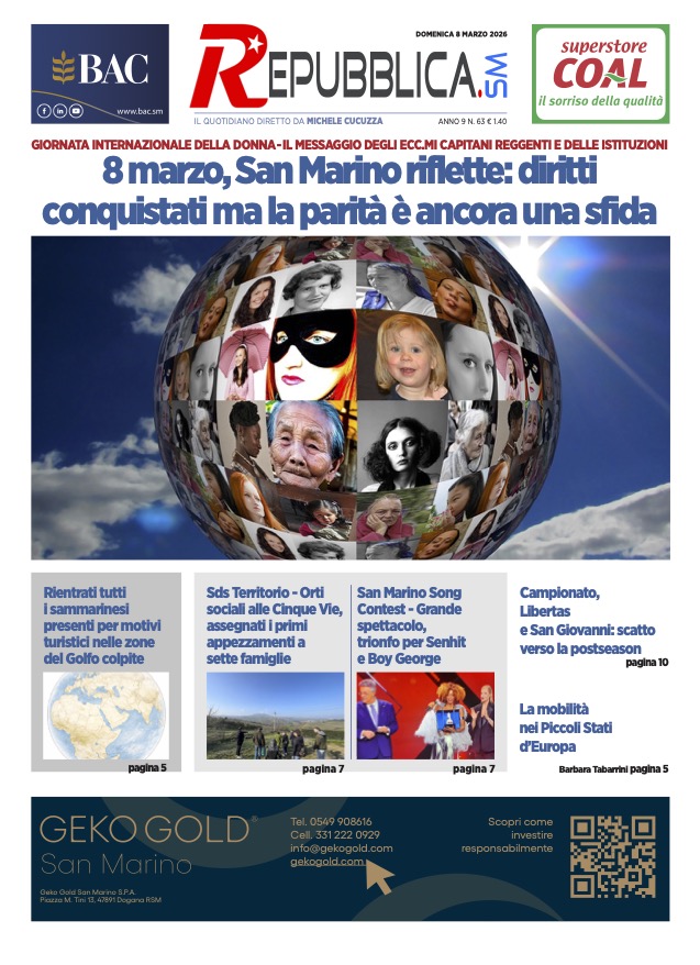 San Marino. La prima pagina de LA REPUBBLICASM