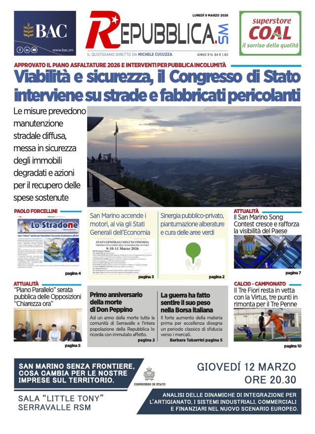 Leggi successivoSan Marino. La prima pagina de LA SERENISSIMASuccessivo