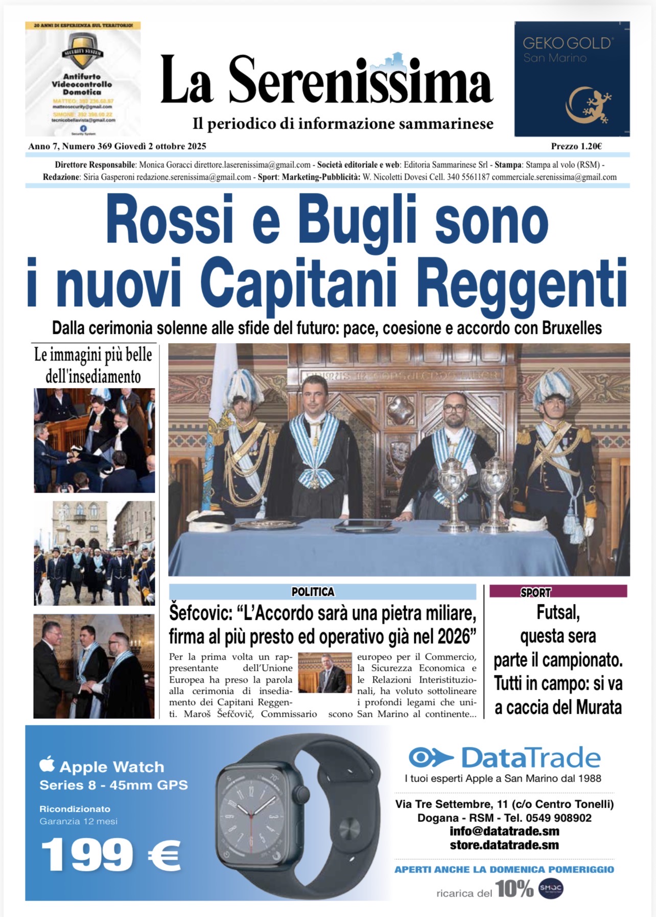 San Marino. La prima pagina de La Serenissima