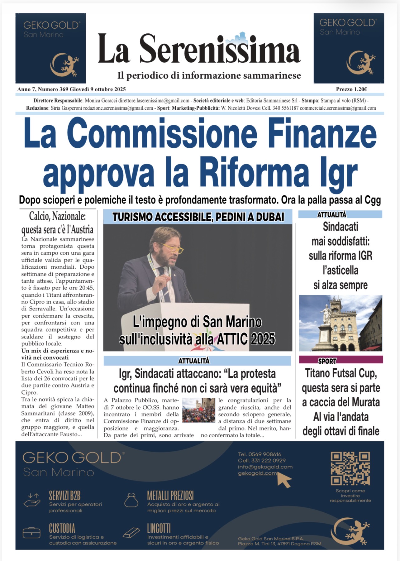 San Marino. La prima pagina de La Serenissima