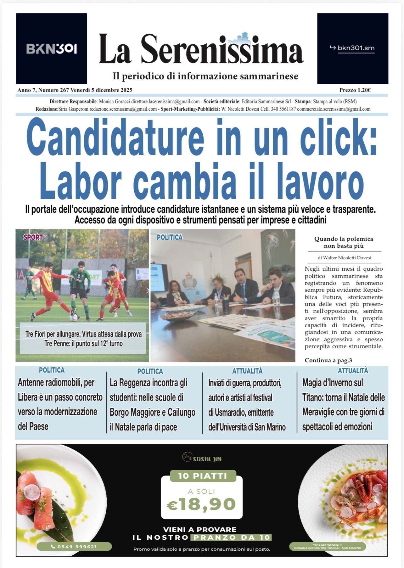 PrecedenteLeggi precedenteSan Marino. La prima pagina de La RepubblicaSM