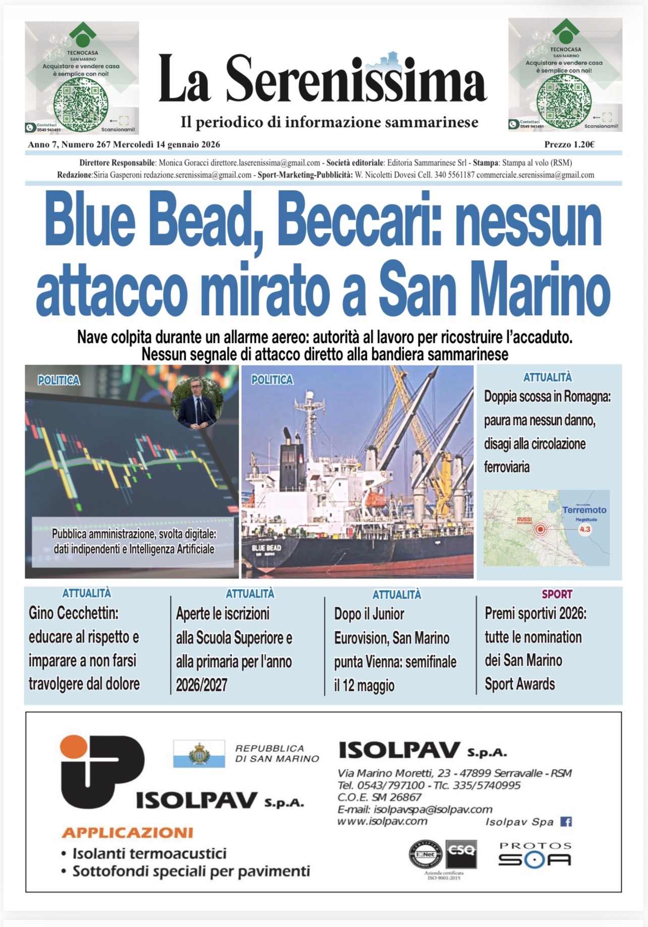 San Marino. La prima pagina de La Serenissima