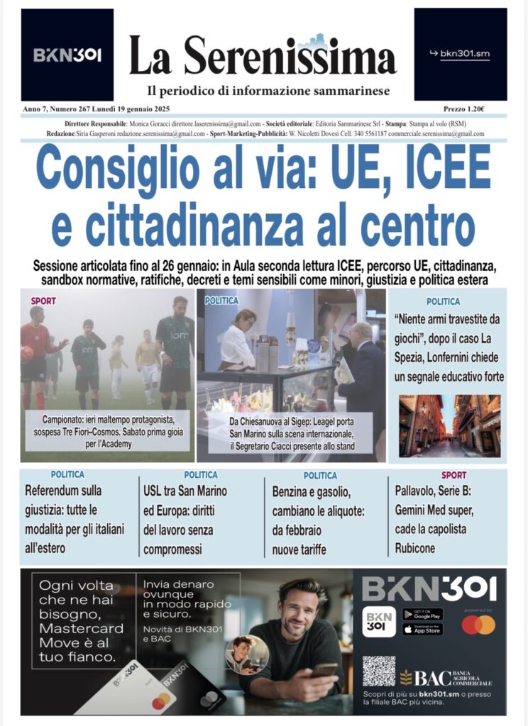 San Marino. La prima pagina de La Serenissima