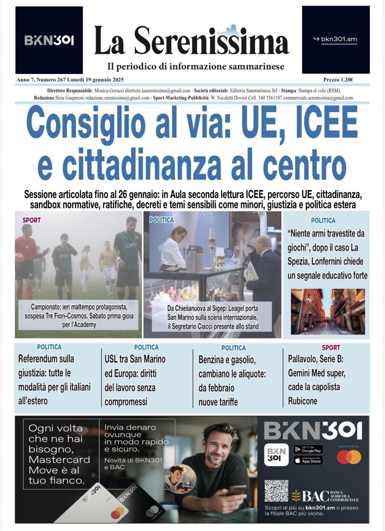San Marino. La prima pagina de La RepubblicaSM