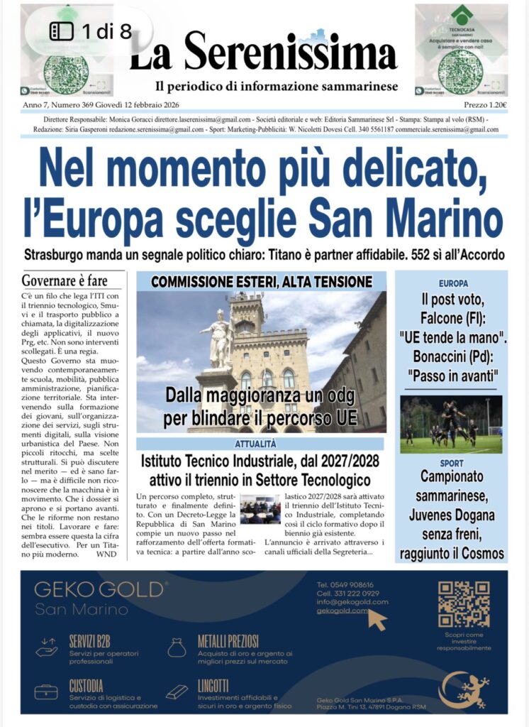 San Marino. Convocazione del Consiglio Grande e Generale 16-17-18-19-20 febbraio 2026