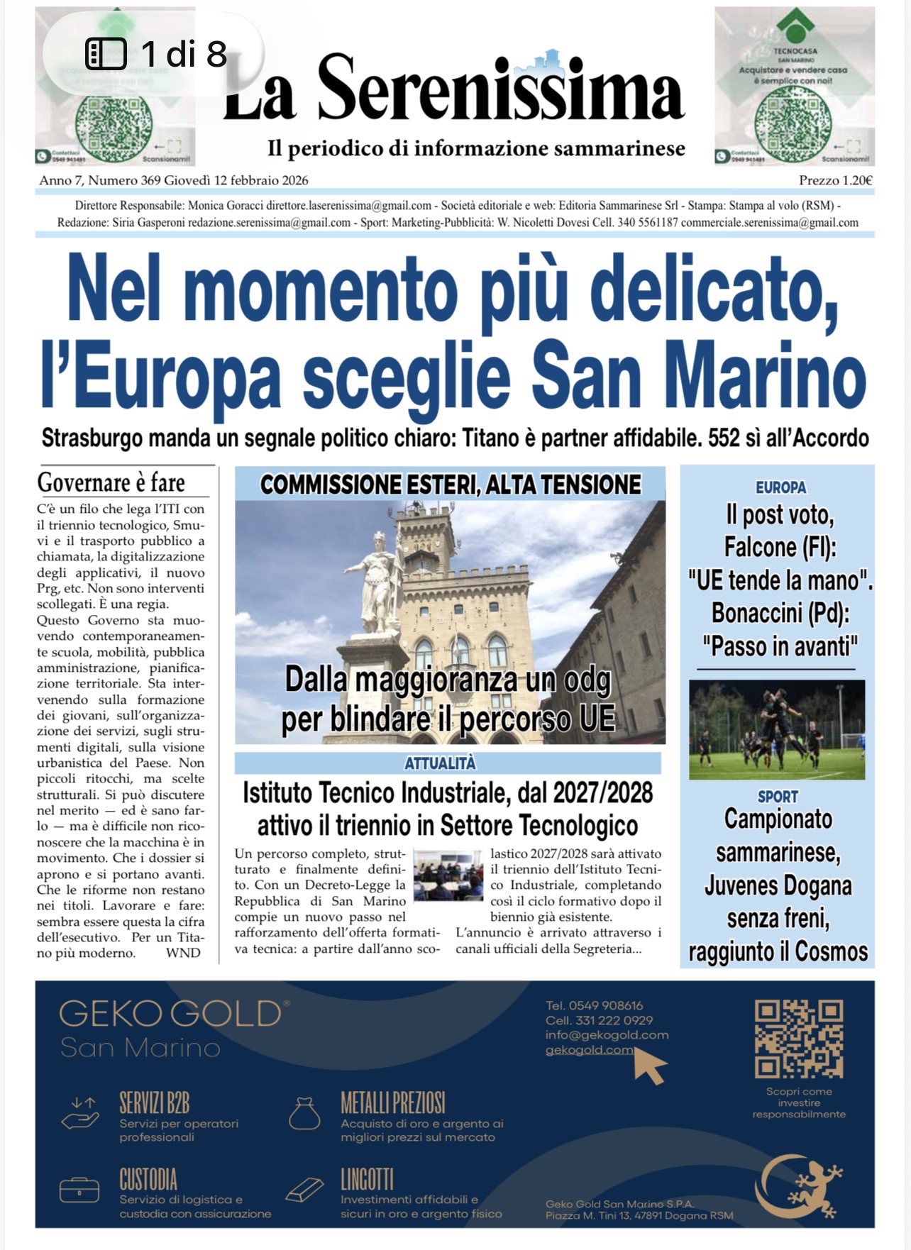 San Marino. La prima pagina de La Serenissima