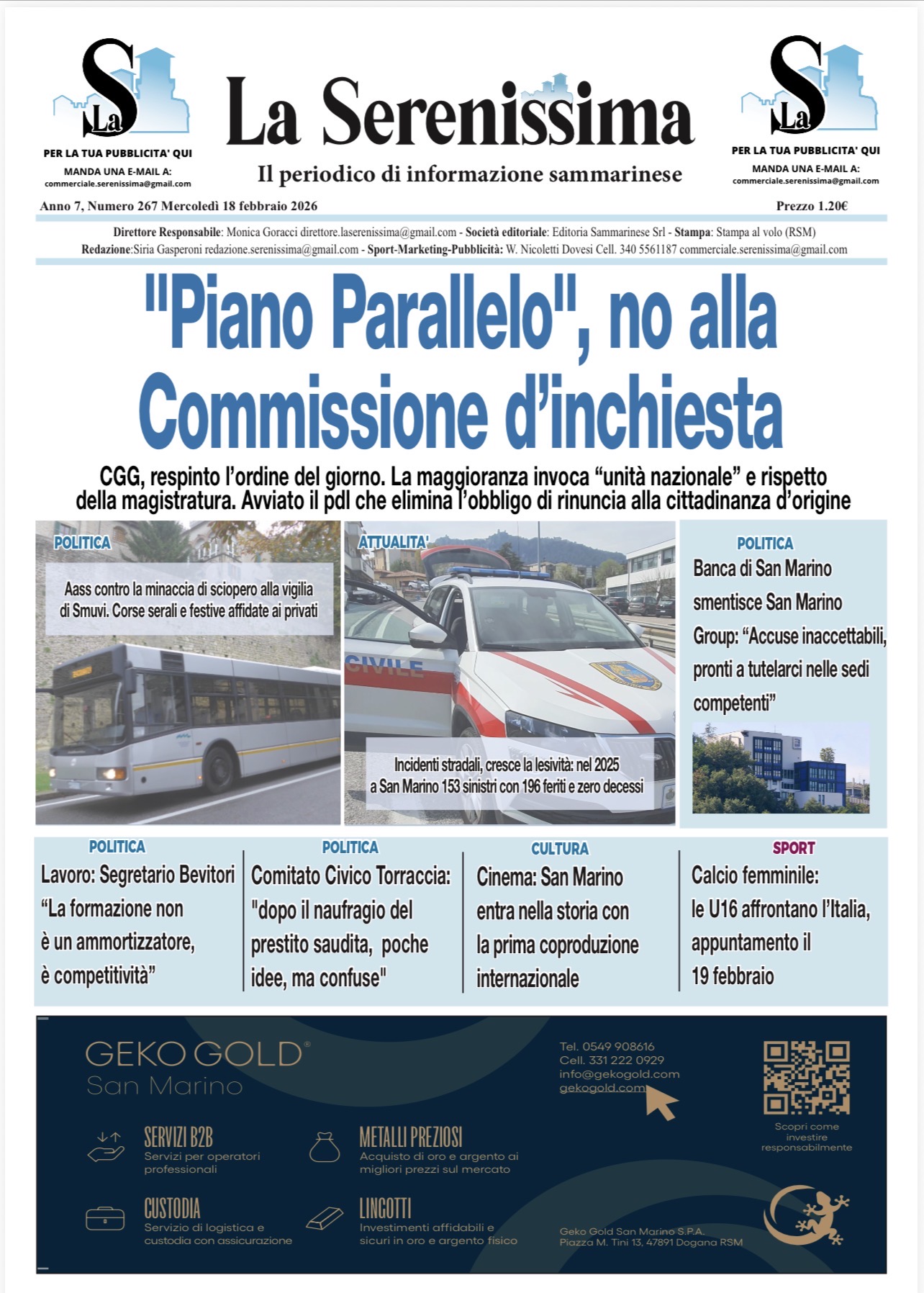 PrecedenteLeggi precedenteSan Marino. La prima pagina de LA REPUBBLICASM