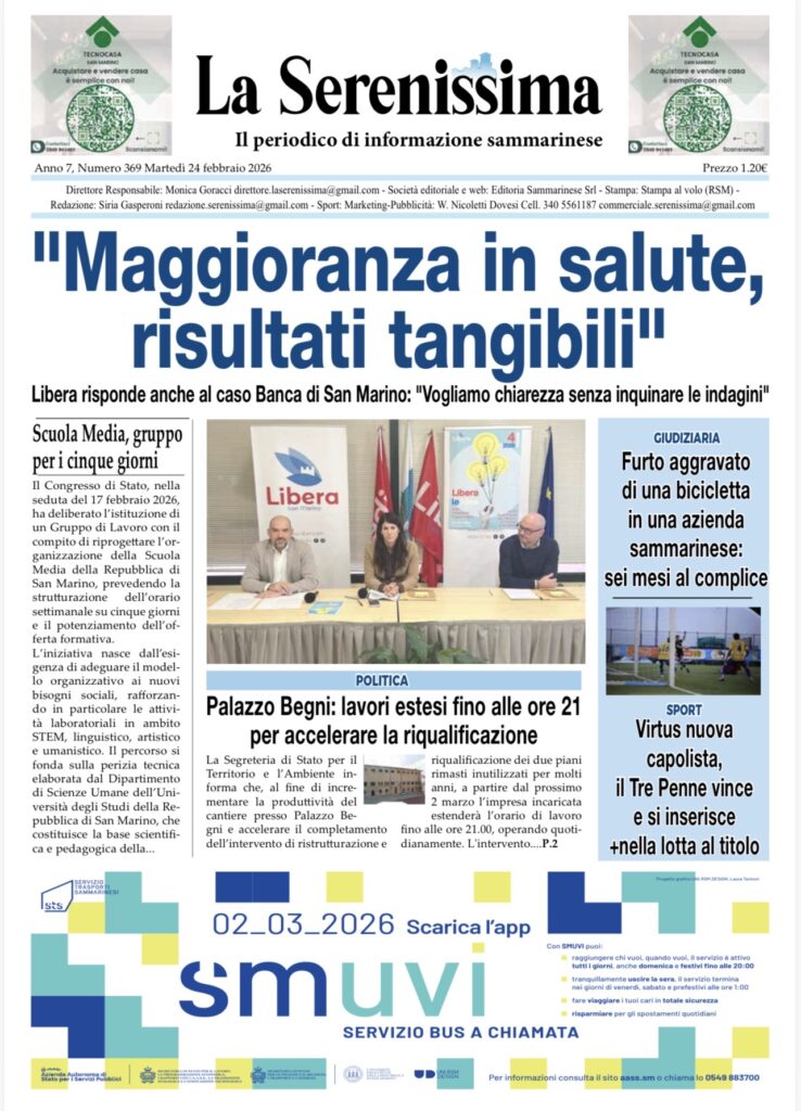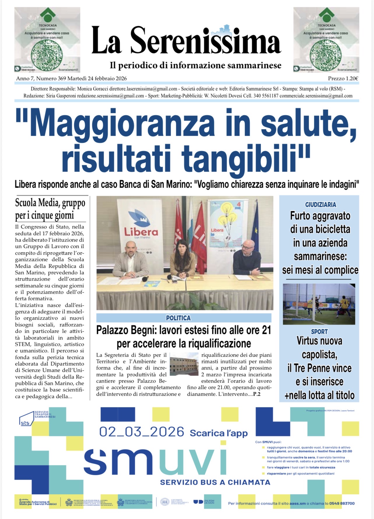 PrecedenteLeggi precedenteSan Marino. La prima pagina de La RepubblicaSM