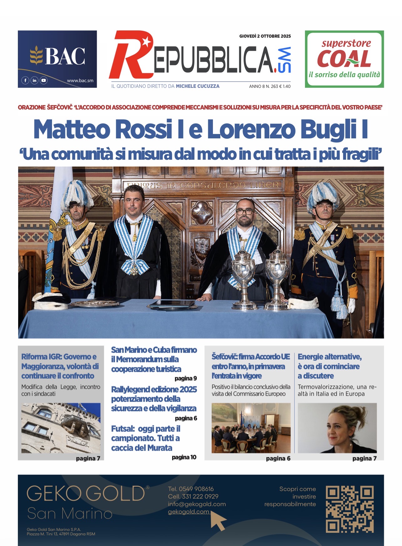 San Marino. La prima pagina di RepubblicaSM