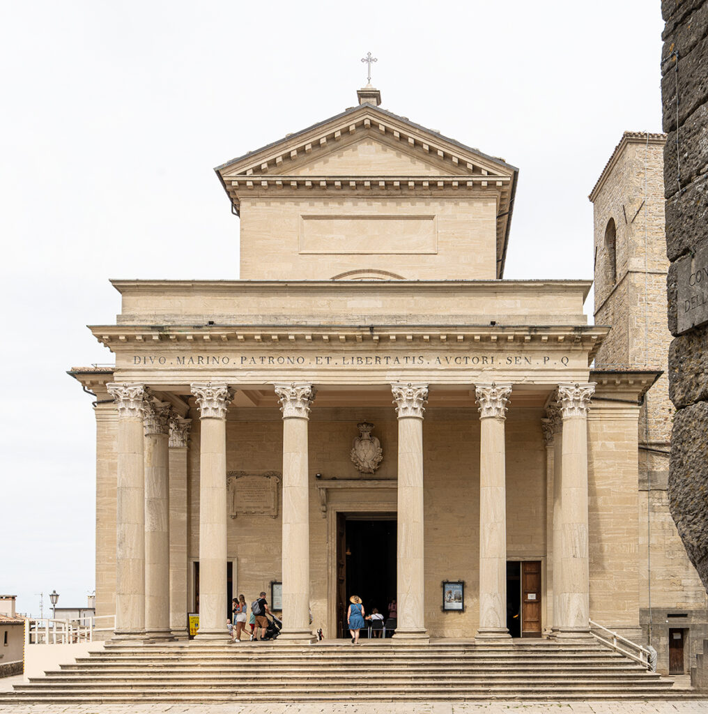 L’interno della Basilica del Santo a San Marino – costruita negli anni Venti e Trenta dell’Ottocento su progetto dell’architetto Antonio Serra – è ricco di decorazioni in rilievo: rosoni di diverse tipologie e dimensioni, elementi vegetali, ghirlande, cornici ad ovoli e dardi, festoni e molte altre ancora.