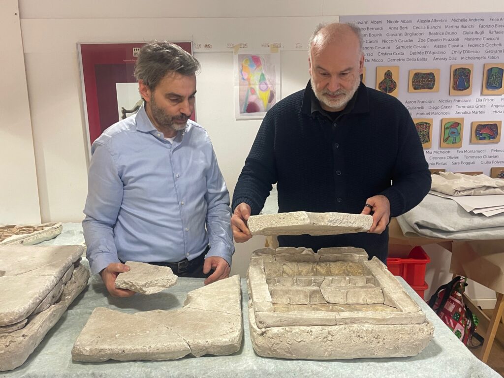 In un deposito sottotetto della Basilica erano riposti materiali preparatori delle decorazioni della Basilica e della Chiesa di San Pietro (modelli preparatori, matrici utilizzate per produrre in serie le decorazioni, stampi di prova).