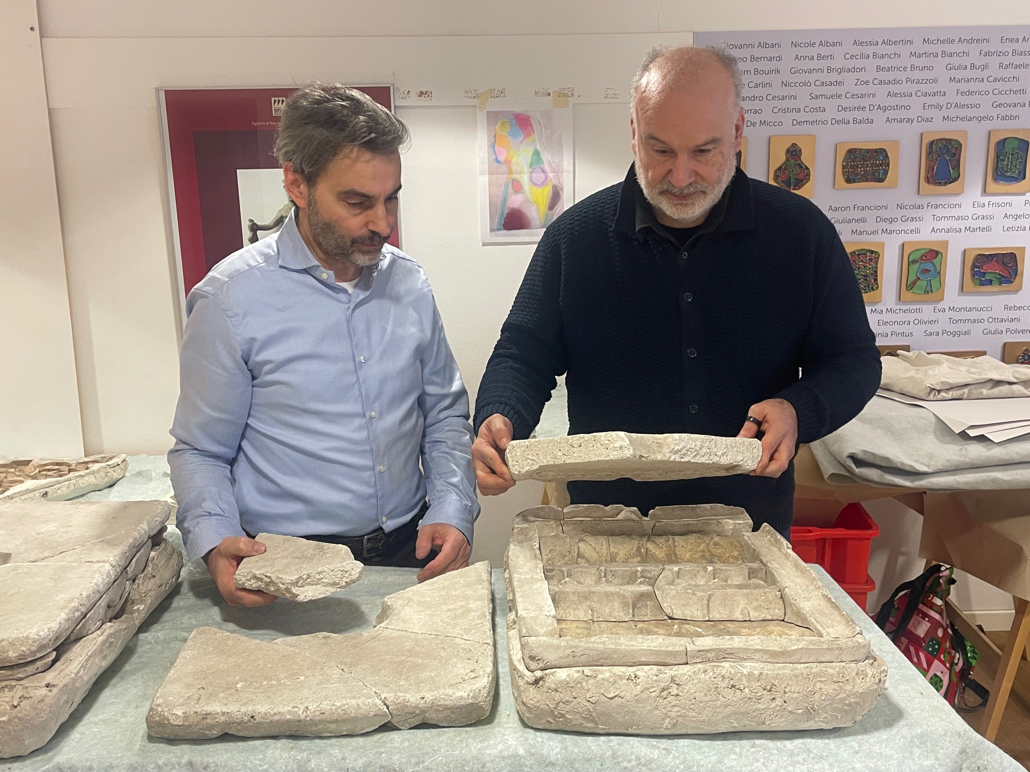 Un primo nucleo è stato spostato al Museo di Stato grazie alla collaborazione dell’Azienda Autonoma di Stato per i Lavori Pubblici ed è stato studiato dall’architetto Renzo Broccoli, con il coordinamento e la collaborazione della Sezione Archeologica degli Istituti Culturali. È inoltre in corso la pulitura dei materiali a cura del Centro del Restauro degli Istituti Culturali-Musei di Stato.