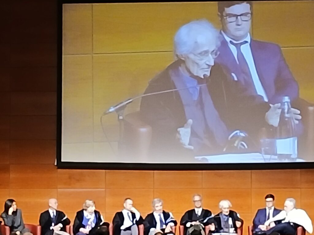 Non ha voluto parlare dell’IA di fronte ad una platea piena di esperti in questa materia, ma ha specificato che l’Università non può e non deve seguire solo le regole del profitto, non è un luogo dove si deve vincere una gara, dove non c’è un dovere di performance. Essa deve essere un luogo in cui si possa “disegnare la coscienza civile”, uno spazio fisico, vivo e vitale, in cui gli studenti non debbano mai volgere la testa e lo sguardo da un’altra parte.