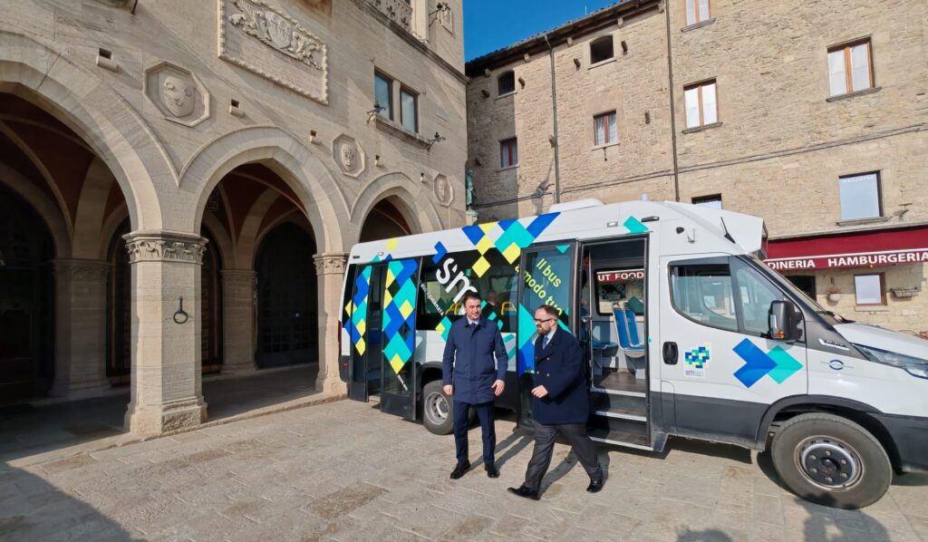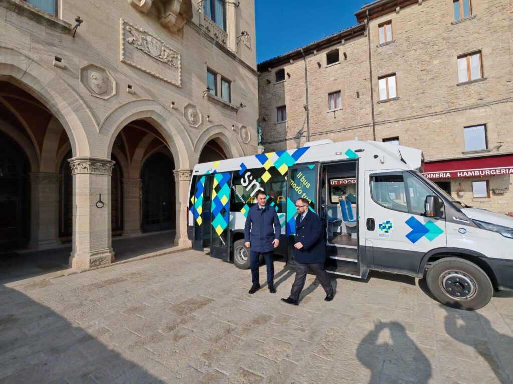 San Marino, 27 febbraio 2026 – Un viaggio inaugurale dal forte valore simbolico quello compiuto questo pomeriggio dalle Loro Eccellenze, che hanno testato personalmente l’efficienza di SMUVI, il nuovo servizio di trasporto a chiamata in partenza ufficiale lunedì 2 marzo. Partiti dal parcheggio di Piazza delle Nazioni Unite, i Capitani Reggenti hanno raggiunto il centro storico, terminando il tragitto di fronte a Palazzo Pubblico, accompagnati dal Segreterio di Stato Alessandro Bevitori, insieme al Direttore di AASS Raoul Chiaruzzi.