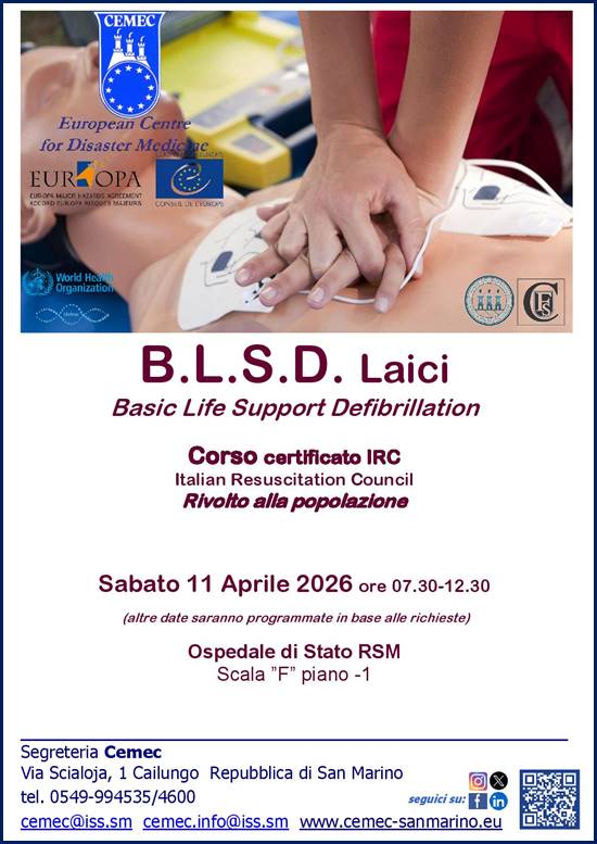 San Marino. Nuova data corso Basic Life Support Defibrillation- BLSD laici sabato 11 aprile 2026
