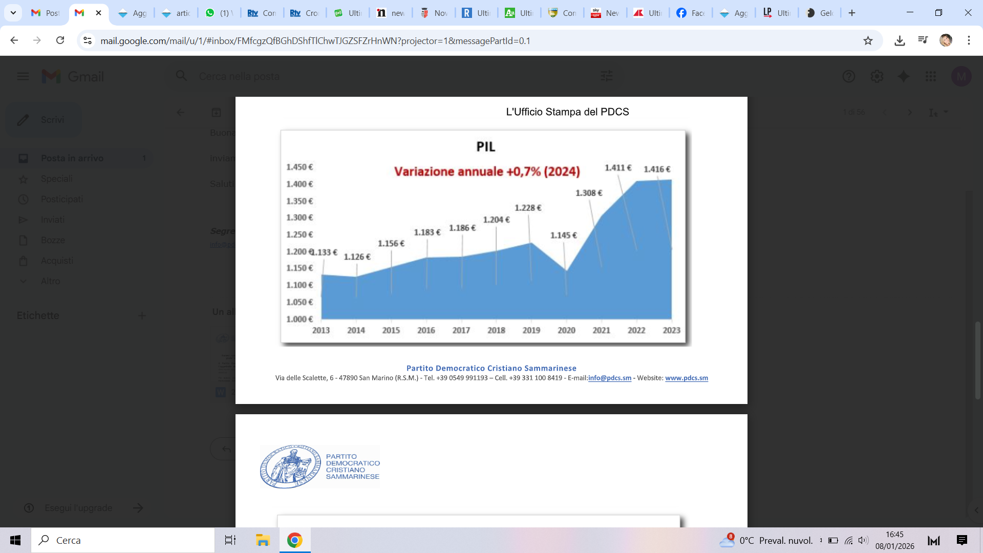 Il Partito Democratico Cristiano Sammarinese ritiene doveroso rispondere con l’oggettività dei dati ai comunicati che l’opposizione ha diffuso negli ultimi giorni, che descrivono San Marino come un Paese in difficoltà strutturale, con toni allarmistici e letture selettive.