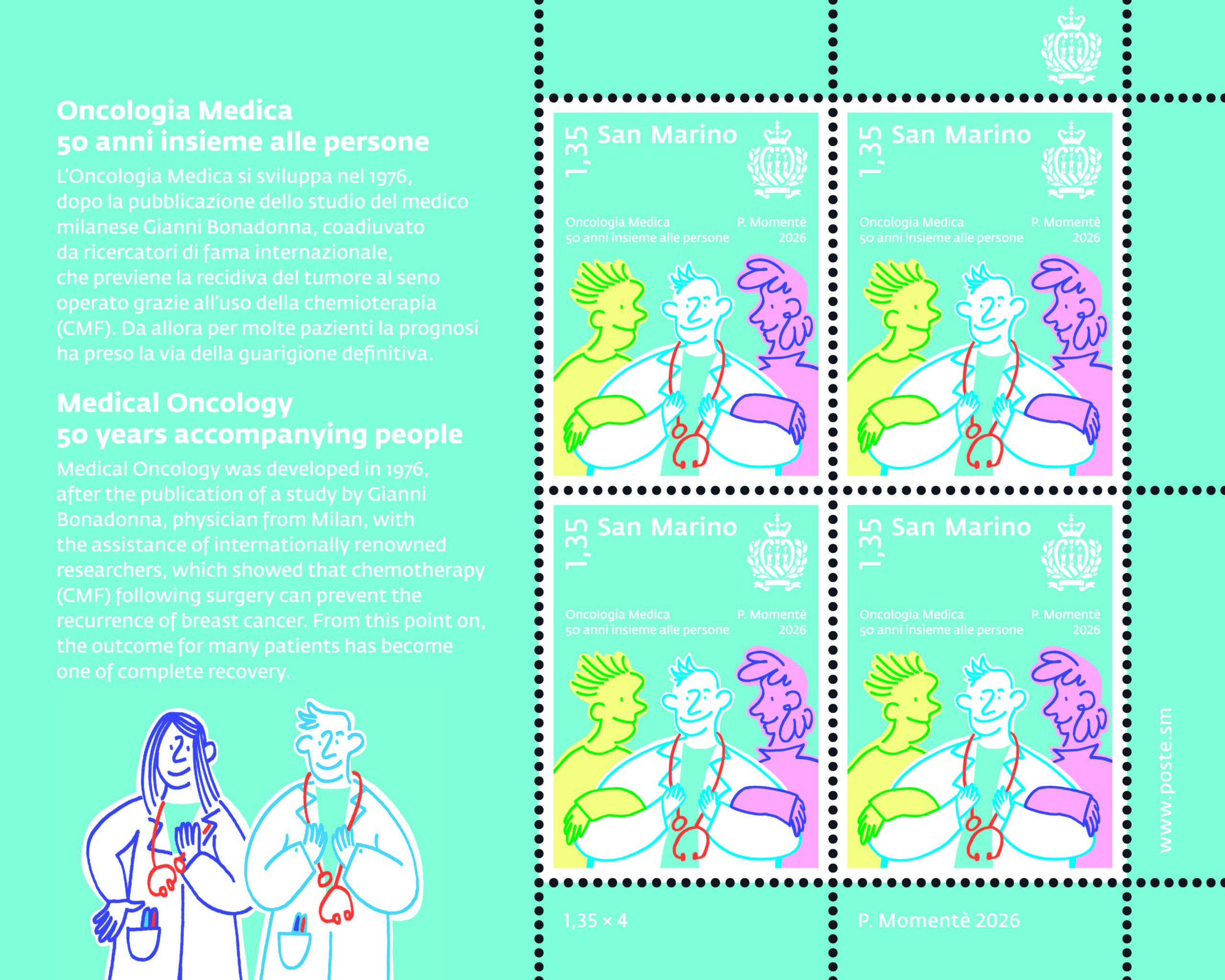 La prima emissione celebra un anniversario fondamentale per la scienza. Cinquant’anni fa, nel 1976, il dottor Gianni Bonadonna pubblicava sul New England Journal of Medicine lo studio pionieristico che introduceva l’uso della chemioterapia per prevenire le recidive del tumore al seno. Quell’intuizione segnò la nascita dell’oncologia medica moderna. Per ricordare questa ricorrenza, l’artista Paola Momentè ha realizzato un francobollo (dal valore di 1,35 euro) che punta a sensibilizzare l’opinione pubblica sull’importanza cruciale della prevenzione e della diagnosi precoce. L’opera vuole essere al contempo un tributo di gratitudine verso tutti i professionisti sanitari impegnati quotidianamente nella lotta contro il cancro.