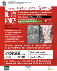 • Collettivo San Marino per la Palestina: mostra “BE MY VOICE, un diario per Gaza”. Inaugurazione sabato 6 dicembre alle ore 17.00 presso Palazzo Graziani