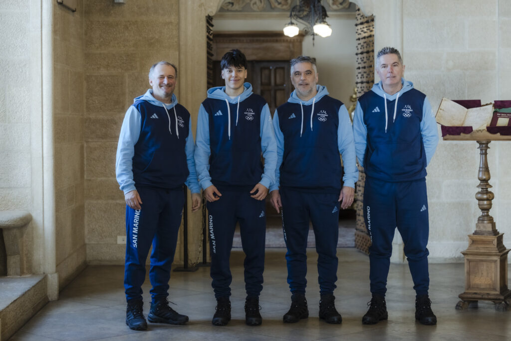 Rafael Mini e tutta la delegazione sammarinese che parteciperà alle Olimpiadi invernali di Milano-Cortina 2026 è stata ricevuta in udienza a Palazzo Pubblico dai Capitani Reggenti, Matteo Rossi e Lorenzo Bugli. Mini è stato accompagnato dal Capo Missione, Gian Luca Gatti; il tecnico, Stefano Sentieri; l’ufficiale di squadra Bruno Guidi e l’Attaché Olimpico Gianni Cardelli, oltre al presidente del CONS, Christ
