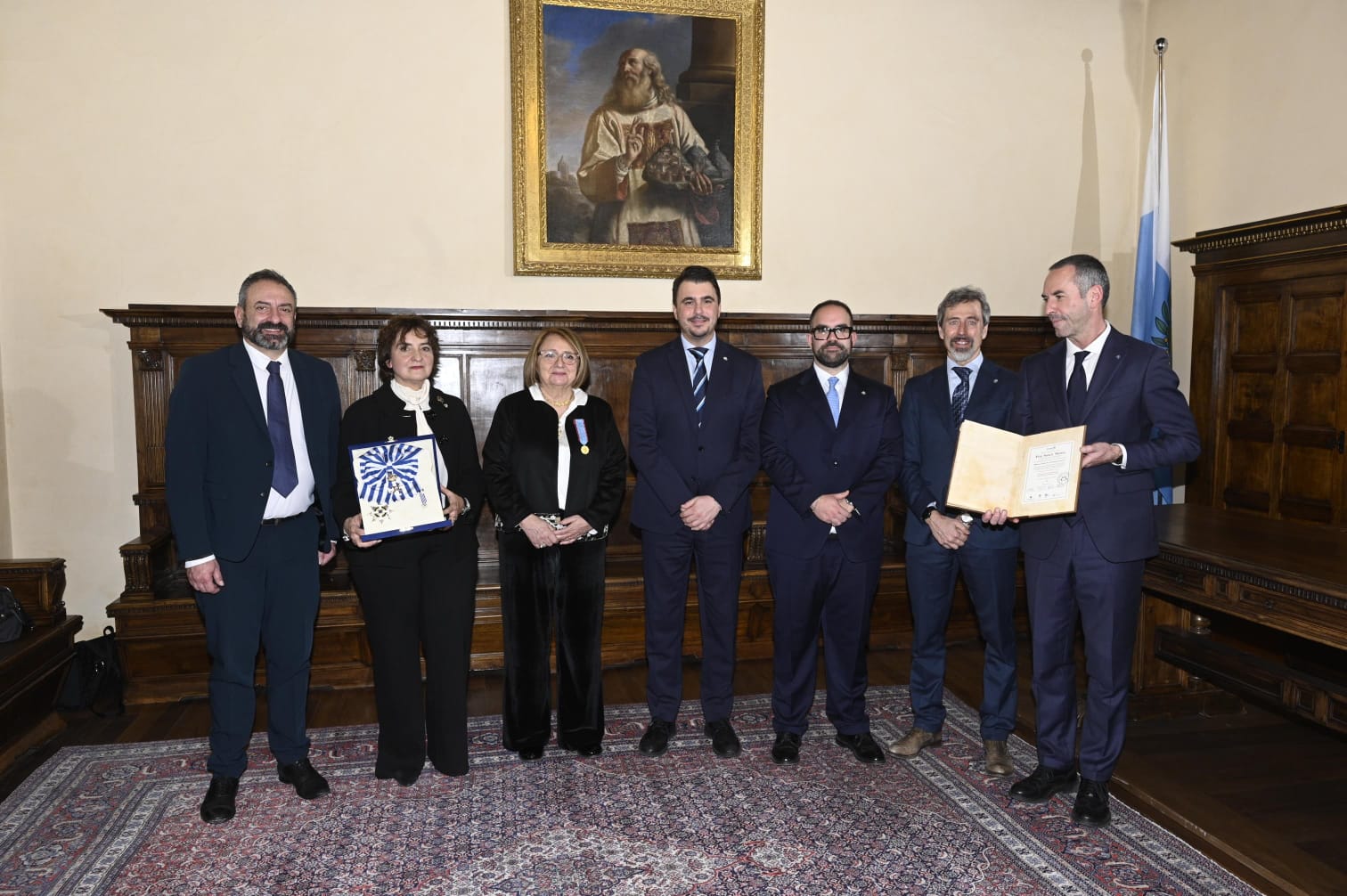 In data odierna (18 dicembre 2025) gli Eccellentissimi Capitani Reggenti Matteo Rossi e Lorenzo Bugli hanno conferito la Medaglia al Merito di Prima Classe (Medaglia d’Oro) alle Professoressa Meris Monti e l’Onorificenza dell’Ordine Equestre di San Marino nel grado di Gran Croce alla Professoressa Giovanna Fadiga.