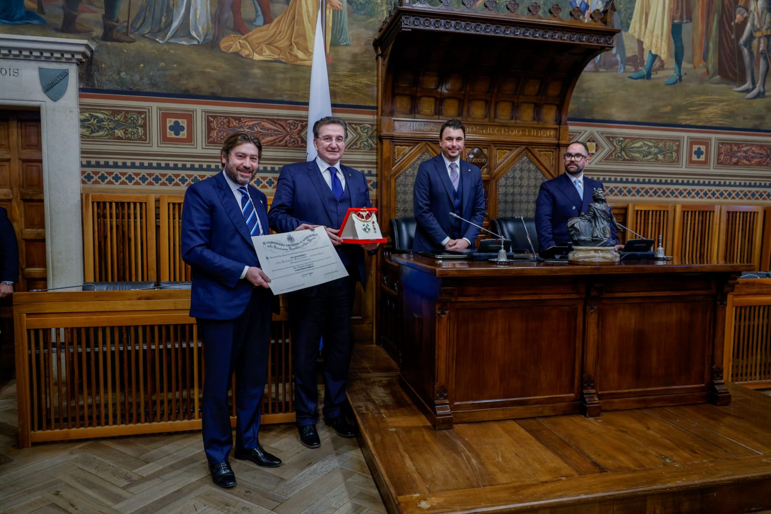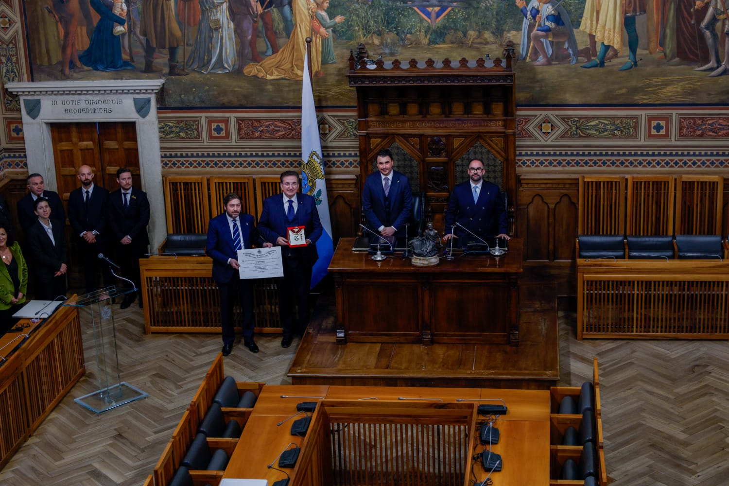Il giornalista nell’occasione è stato insignito dalla Reggenza dell’Onorificenza dell’Ordine Equestre di Sant’Agata, nel grado di Commendatore, in segno di riconoscimento del contributo dato da Roberto Giacobbo nel promuovere e valorizzare la storia sammarinese.