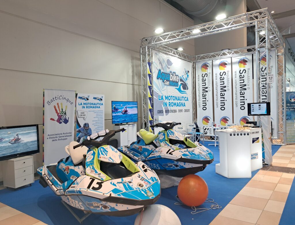 In visita presso lo stand la Dott.ssa Roberta Frisoni Presidente alla Regione Emilia Romagna delega Sport e Turismo. “Un incontro cordiale e collaborativo ” afferma il presidente di Aquabike Nanni Walter. ” Stiamo cercando di dialogare anche con la Regione sui temi Sport e avviamento alla Motonautica” Cordiale anche la visita del Presidente di Regione Emilia Romagna Dott. Andrea Dondi in rappresentanza del CONI. “Siamo contenti che nel panorama Regionale veniamo notati come club attivo e partecipativo alle varie manifestazioni. Non per ultimo di importanza presente anche il Dott. Michele Lari Assessore allo Sport del Comune di Rimini sempre collaborativo con il Team Sammarinese.