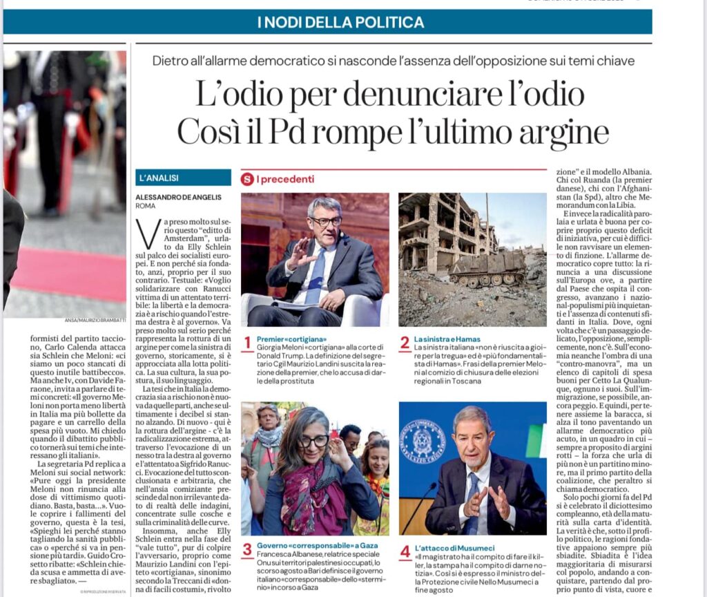 Dice che, sostanzialmente, non essendo la Schlein in grado, su qualsiasi tema, dall’immigrazione all’Europa, di dire alcunché contro il governo italiano che non risulti in contraddizione con gli stessi socialisti europei, che condividono con la Meloni il governo europeo di Von der Lyen e Fitto, allora la butta in caciara.