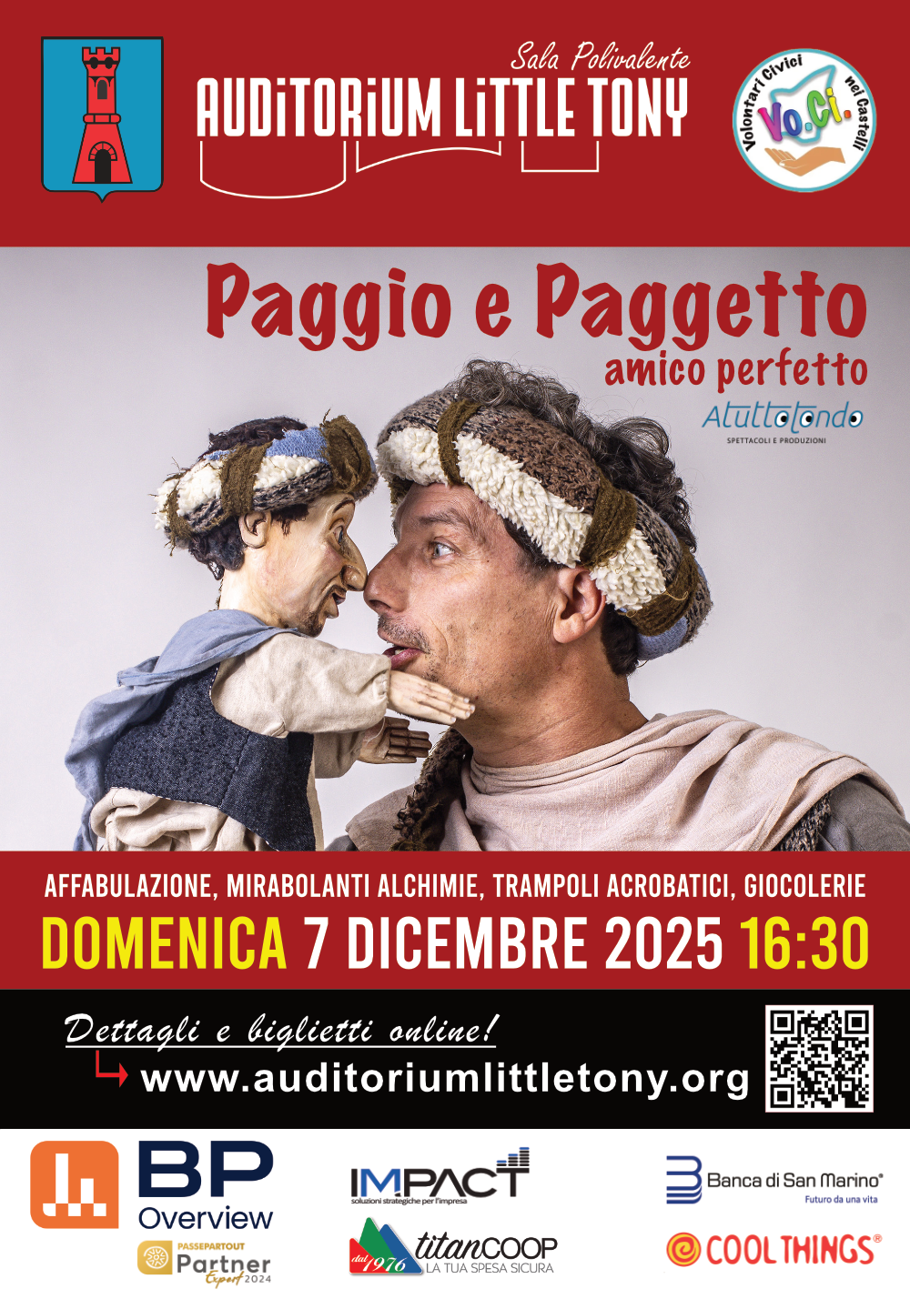 A Serravalle va in scena la magia del teatro ragazzi con un appuntamento dedicato alle famiglie e alla scoperta delle arti sceniche. Domenica prossima, 7 dicembre, l’Auditorium Little Tony accogliera’ lo spettacolo “Paggio e Paggetto – Amico Perfetto”, una produzione che promette di incantare il pubblico con un mix di giocoleria e acrobazie, inserito nel cartellone della rassegna culturale “Piccoli Sguardi 2025”.