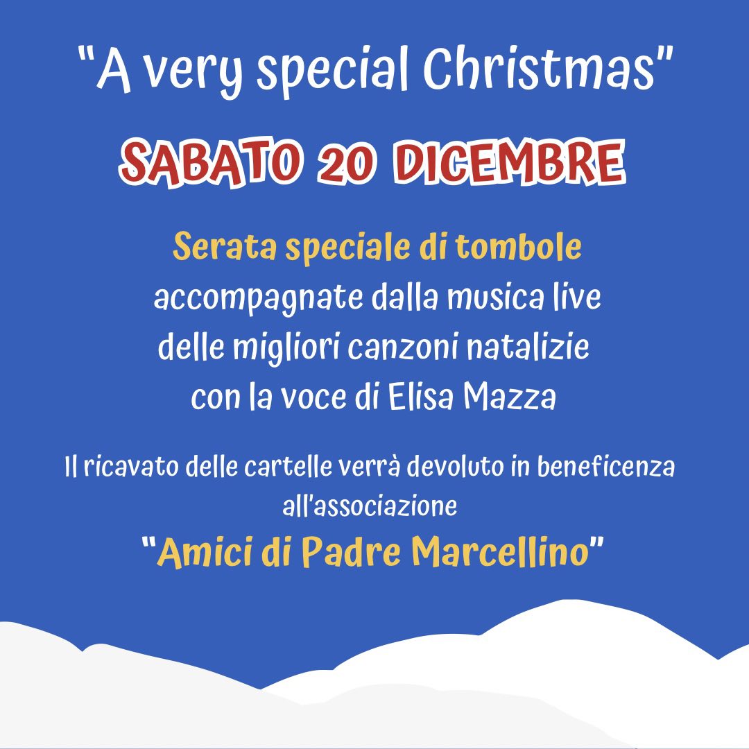 Il 20 si svolgerà l’evento “A very special Christmas” — Speciale tombola di beneficenza! Il ricavato delle cartelle verrà devoluto interamente all’associazione Amici di Padre Marcellino.