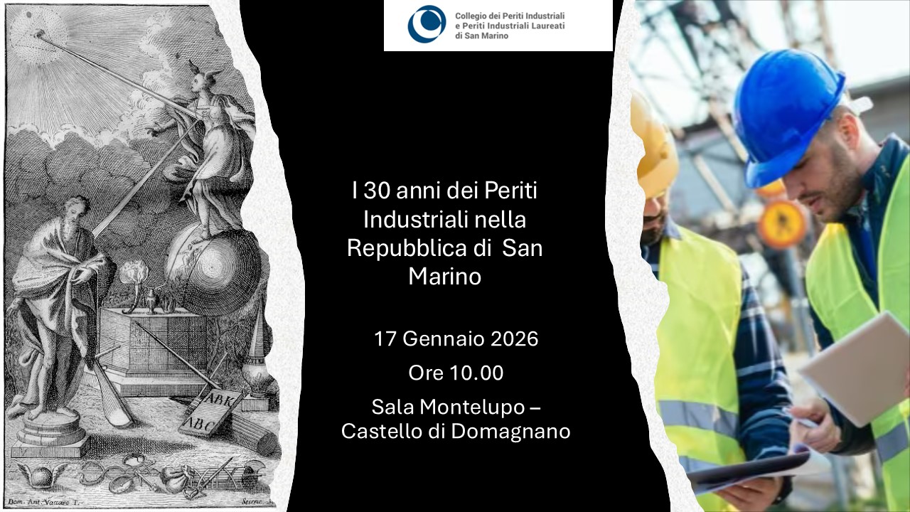 L’Albo dei Periti Industriali e Periti Industriali Laureati della Serenissima Repubblica di San Marino comunica che i festeggiamenti per il trentennale dell’Albo si terranno il 17 gennaio 2026 posticipandolo rispetto alla data effettiva di fondazione per via delle numerose festività che si sono succedute da giugno scorso ad oggi. Sarà un’occasione di incontro con la cittadinanza interessata e di dibattito politico-culturale.