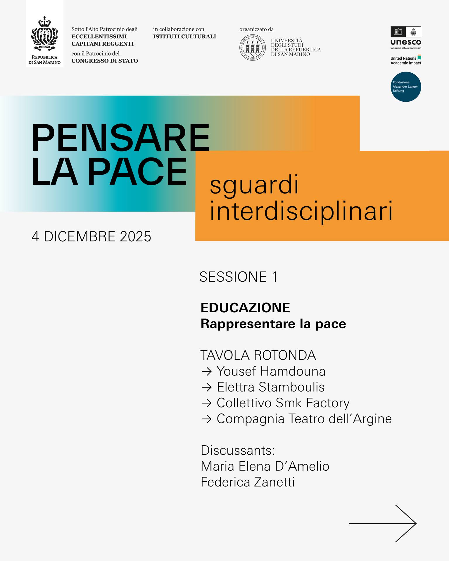 Programma completo: https://www.unirsm.sm/evento/pensare-la-pace/