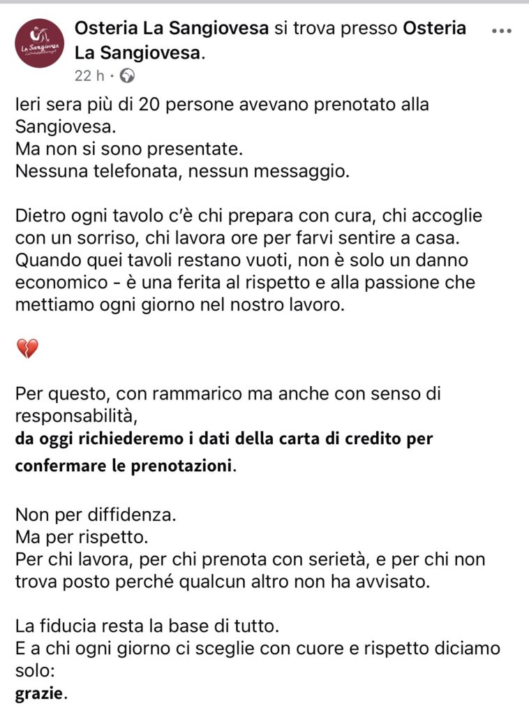 Santarcangelo. Alla Sangiovesa prenotano in 20 e non si presentano. Il commento del ristoratore