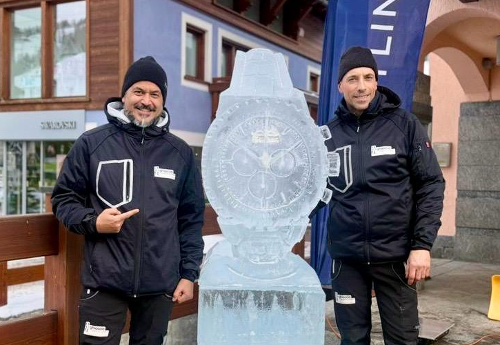 Il periodo si conferma particolarmente intenso per l’azienda romagnola. Solo la settimana scorsa, il team è stato protagonista a Livigno in occasione dell’apertura dei Giochi Olimpici invernali Milano-Cortina 2026. In quell’occasione, Falasconi ha lavorato su otto blocchi per un totale di mille chili di materiale, realizzando una monumentale riproduzione di un orologio Breitling davanti alla boutique del marchio svizzero.
