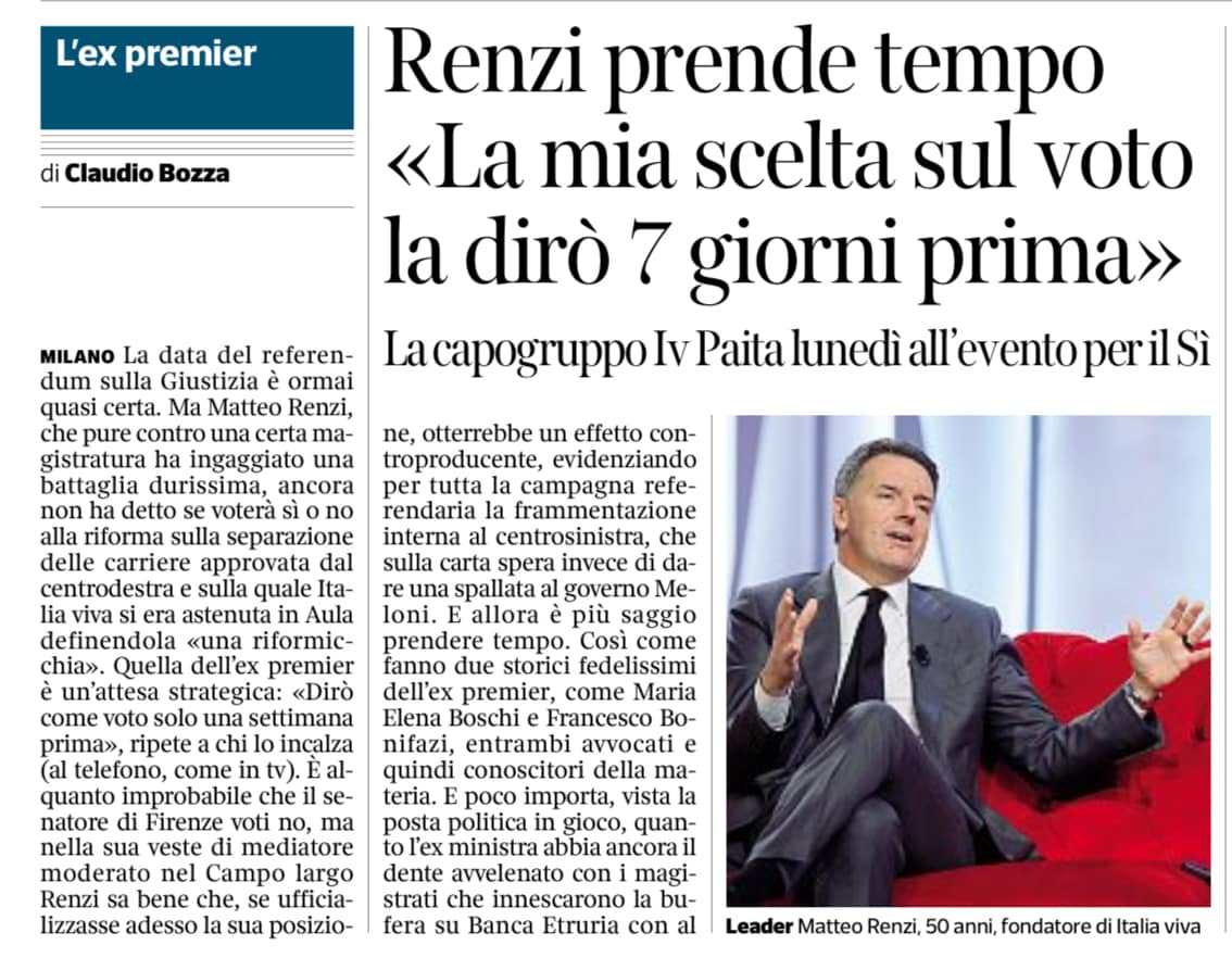 Renzi sul referendum ci annuncerà le sue decisioni a sette giorni dal voto.
