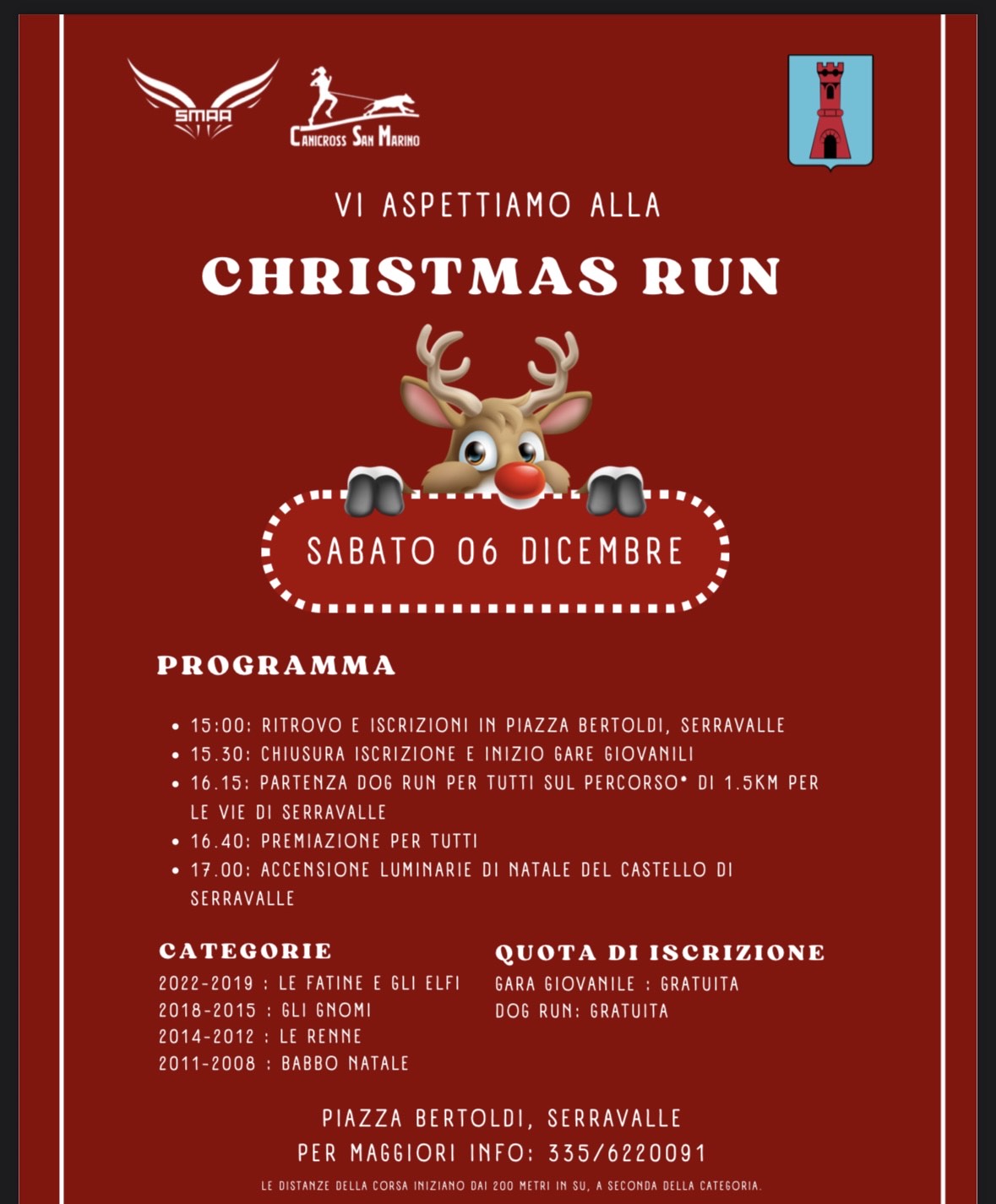 aria di festa incontra lo spirito sportivo nel cuore di Serravalle. Sabato 6 dicembre, le strade del Castello e il Parco Laiala diventeranno il palcoscenico della tradizionale “Christmas Run”, un appuntamento che unisce agonismo, divertimento e solidarietà. L’evento, organizzato dalla San Marino Athletics Academy (SMAA), farà da prologo all’atteso momento dell’accensione delle luminarie natalizie.