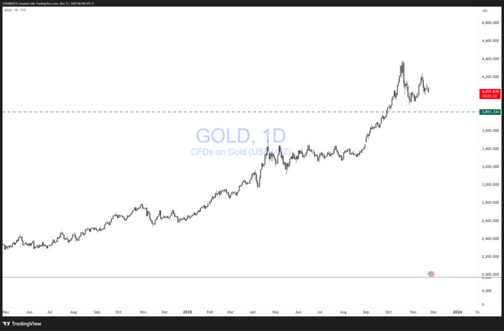 L’oro invece continua a salire, ha avuto un pullback nei giorni scorsi da $4400 fino a $4000, anche qui ci sono state liquidazioni importanti.