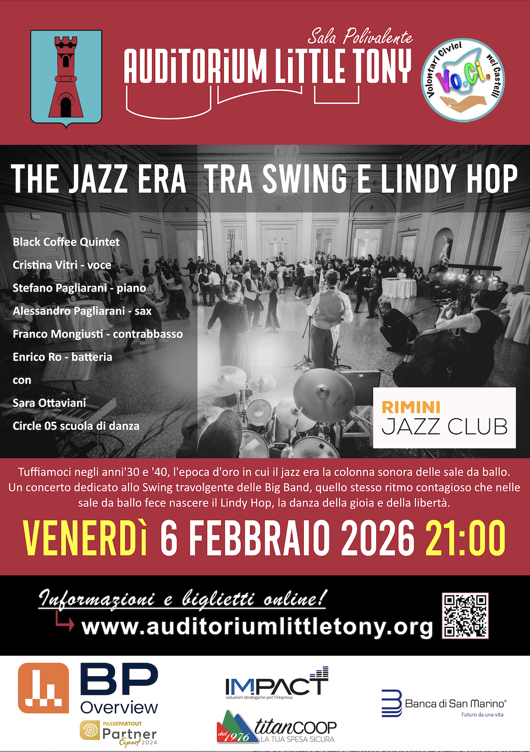 Sul palco, l’energia dei Black Coffee Quintet e le performance dei ballerini di Lindy Hop della scuola Circle 05, con la partecipazione di Sara Ottaviani.