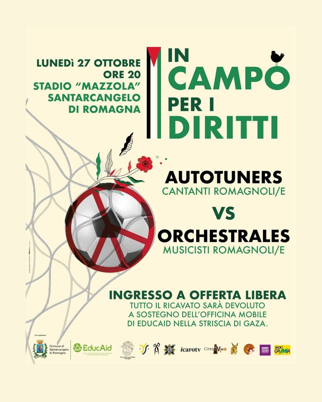 L’iniziativa, promossa e diffusa sui social network, chiama a raccolta la comunità della Valmarecchia per un evento all’insegna dello sport e dell’impegno umanitario. Sul terreno di gioco si affronteranno simpaticamente gli “Autotuners”, la squadra dei cantanti, e gli “Orchestrales”, quella dei musicisti, in una partita il cui unico scopo è segnare un gol per la solidarietà.